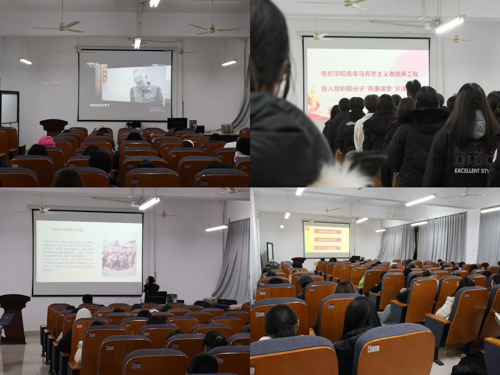 为深入学习贯彻习近平新时代中国特色社会主义思想和党的二十届三中全会精神,切实加强学生骨干的教育培训,电影学院团总支于12月3日至12月8日,在学院四楼一教组织开展青年马克思主义者培养工程暨入党积极分子“青廉课堂”党课培训活动。