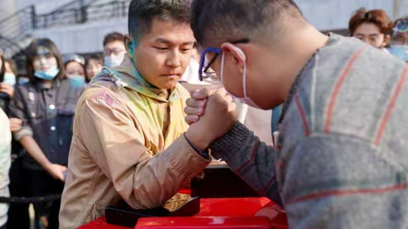 花环接力、指压板拍照、绑腿跑.....电影学子以饱满的姿态出发,以坚定的意志和勇气面对未知,跨过重重关卡冲向终点。汗水滴落在掰手腕的赛台上,身影冲破五彩斑斓的烟雾而来,脸上身上都是彩虹的印记。