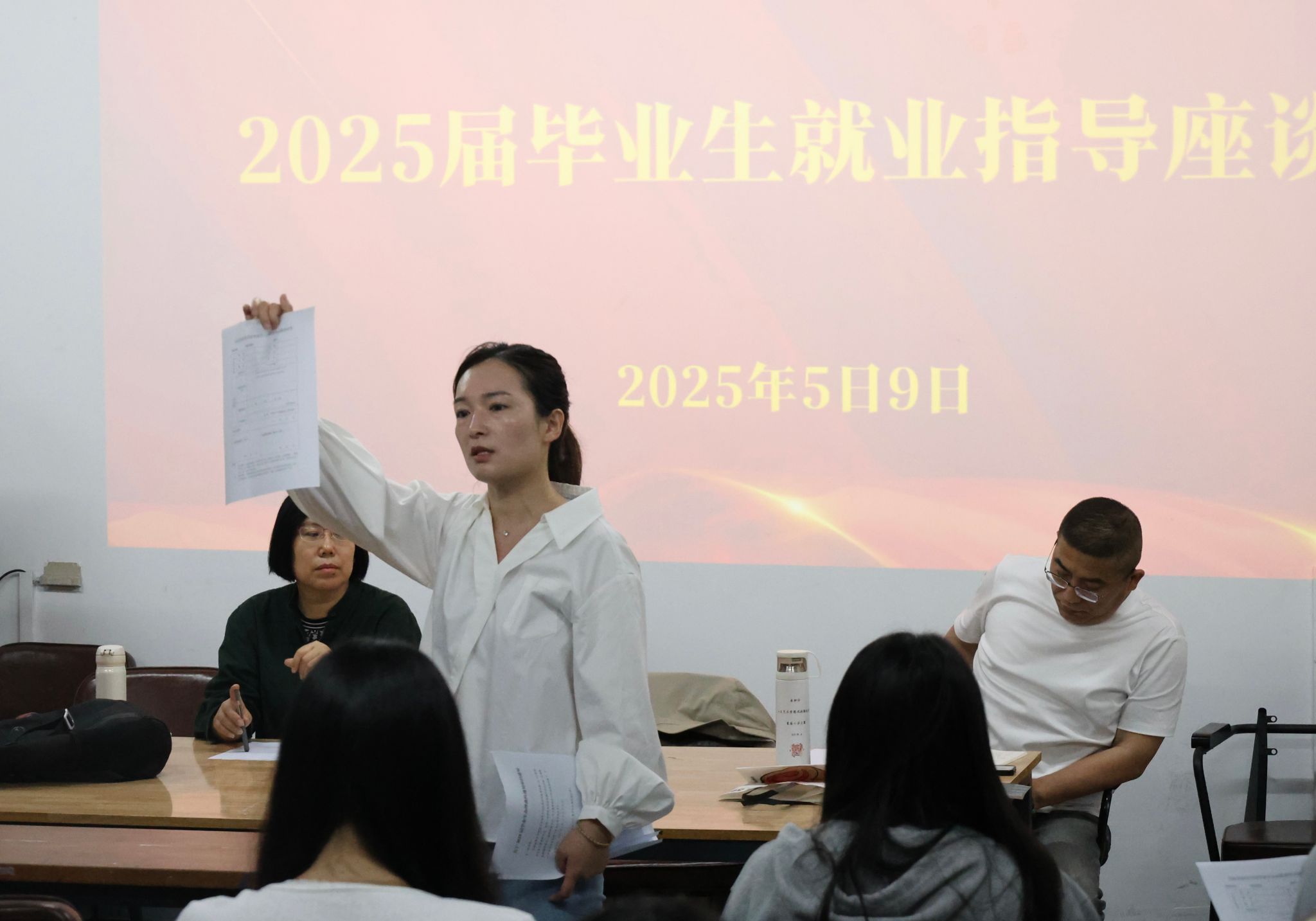 座谈会上,辅导员鼓励同学们树立科学合理的就业观念。面对当下严峻复杂的就业市场形势,辅导员提醒大家要摆正心态,既不盲目乐观,也不过分焦虑,以积极的态度正视竞争。同时,鼓励同学们不断提升自身核心竞争力,在专业能力、实践技能、综合素质等方面下足功夫。在求职过程中,要脚踏实地,主动出击,积极探寻与自身能力、兴趣相匹配的就业岗位,以积极行动把握就业主动。