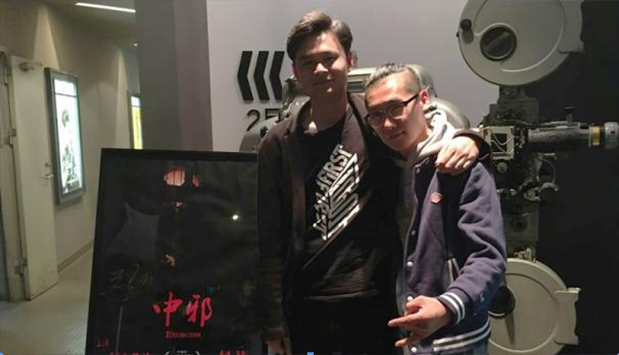 (影视摄制学生吕鹏(右)先后在电影《中邪》《我不是药神》《疯狂的外星人》中担任后期技术制片)