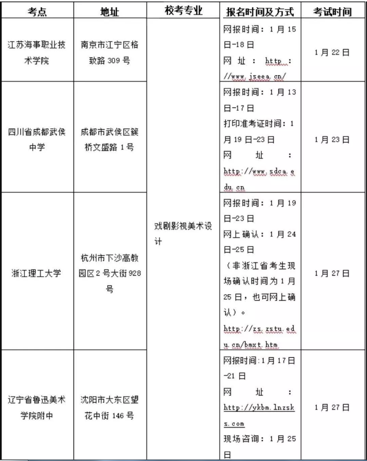 ●浙江、四川、辽宁考点允许非本省考生参加考试,未设美术考点省份的考生可任选一个考点参加考试。