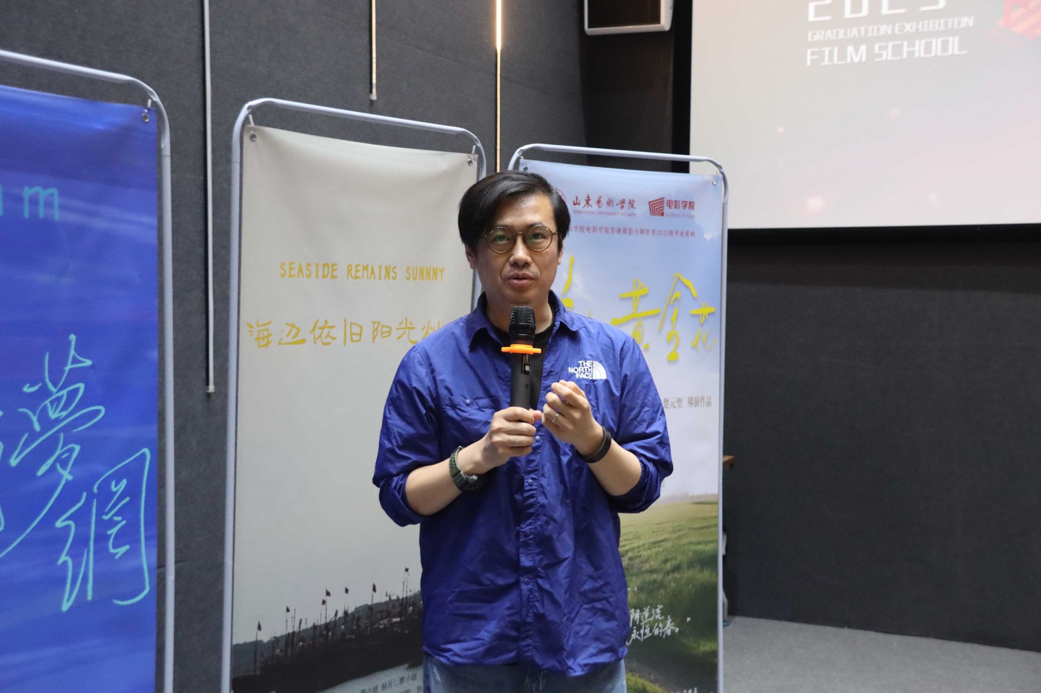 活动伊始,电影学院孔令强书记为活动致开幕词,表达了对2025届35名毕业生完成学业的祝贺,也对同学们在专业上的收获给予认可,并祝福同学们在今后的学业、事业上有更大的成就;电影学院贾俊建副书记表达了对2025届毕业生的祝福和肯定;随后,副院长孙非发言,希望同学们可以将展映作为新的开始,鼓励大家在专业学习的道路上继续坚持下去,用作品传递更多的情感与思索。