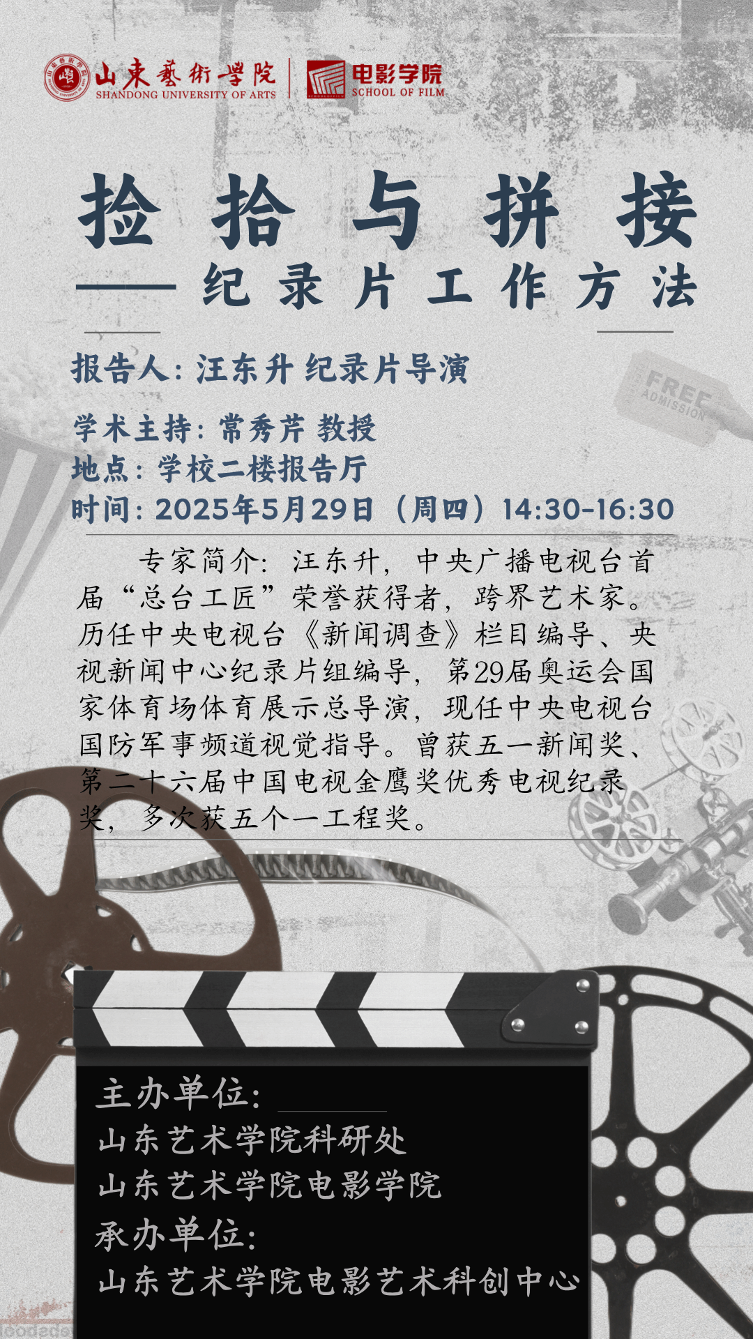 本次讲座,我们特别邀请到中央广播电视总台首届“总台工匠”、著名纪录片导演汪东升先生,为大家带来他在多年创作实践中的独到经验和精彩案例。