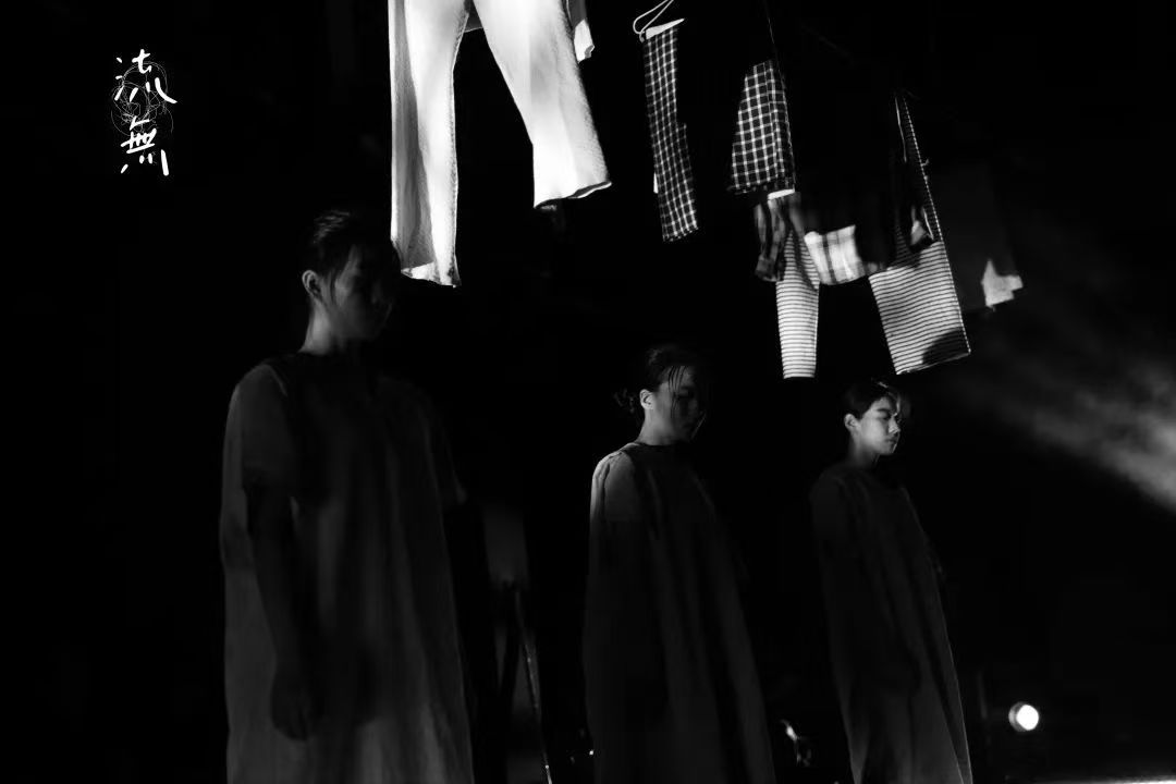 《流无》通过三位角色——母亲、女孩、老人,分别演绎了同一位女性生命中的不同阶段。母亲在丧子之痛中挣扎,女孩在失明的黑暗中探寻未知,老人则在记忆的边缘徘徊。随着剧情的推进,三人的动作与情感交织重叠,最终揭示出他们实为同一人,映射出老人的一生。作品通过肢体语言和舞台设计,深刻探讨了生命、记忆和存在的意义。